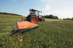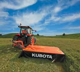 Effective and reliable, the Kubota DM1024 Disc Mower brings you a working width of 7’ 9” and the confidence you’re looking for in a hay tool. A hydraulic cylinder easily lifts the disc mower without utilizing the three-point linkage and when you’re transporting it to and from the field it nimbly folds into a vertical position.The spring loaded breakaway reduces damage from obstacles by protecting the cutterbar. Only requiring a minimum of 46 PTO, the DM 1024 utilizes three counter rotating disks allowing a smooth cut.